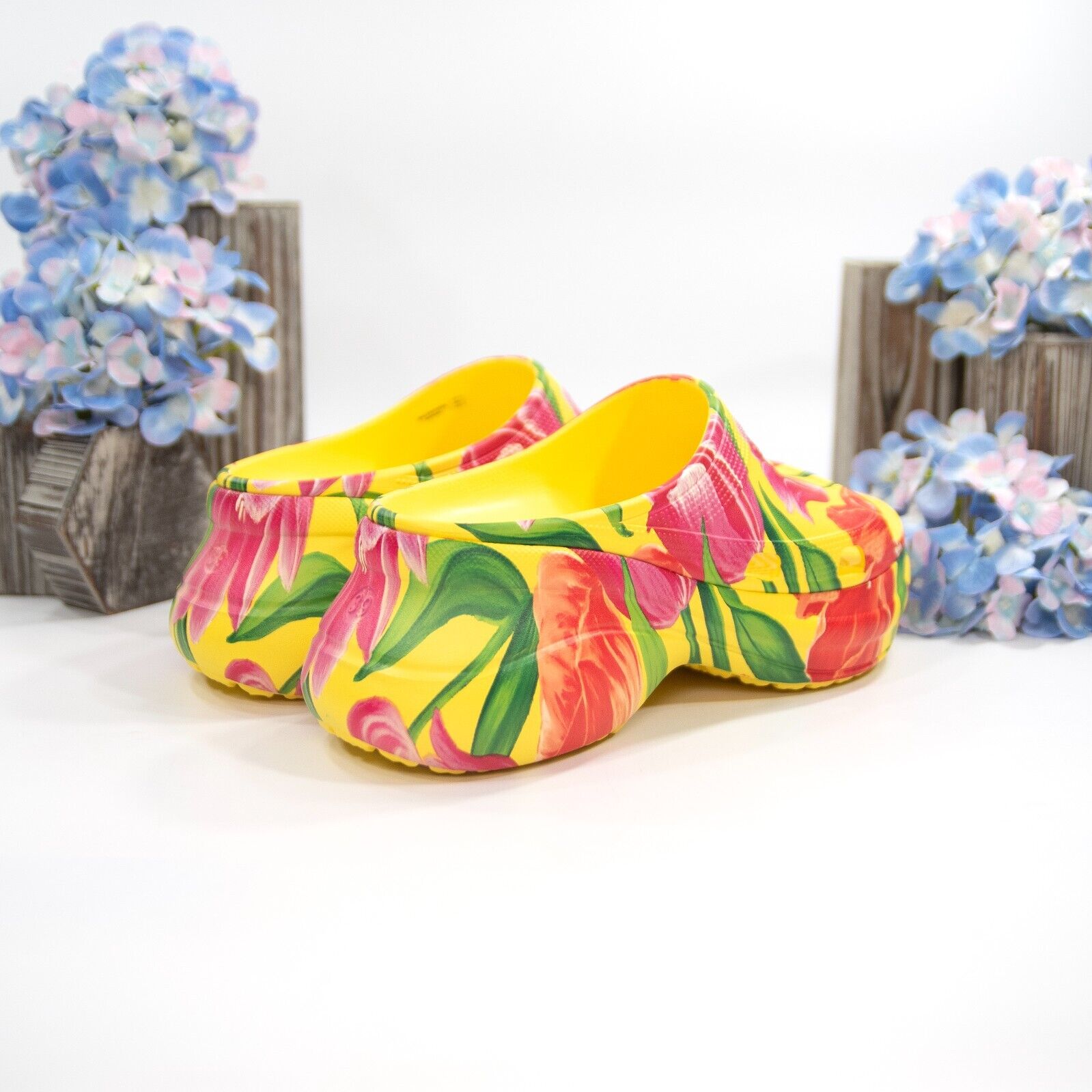 Balenciaga X Crocs Floral Tulip Pool Platform Slides Size 39 NIB $675