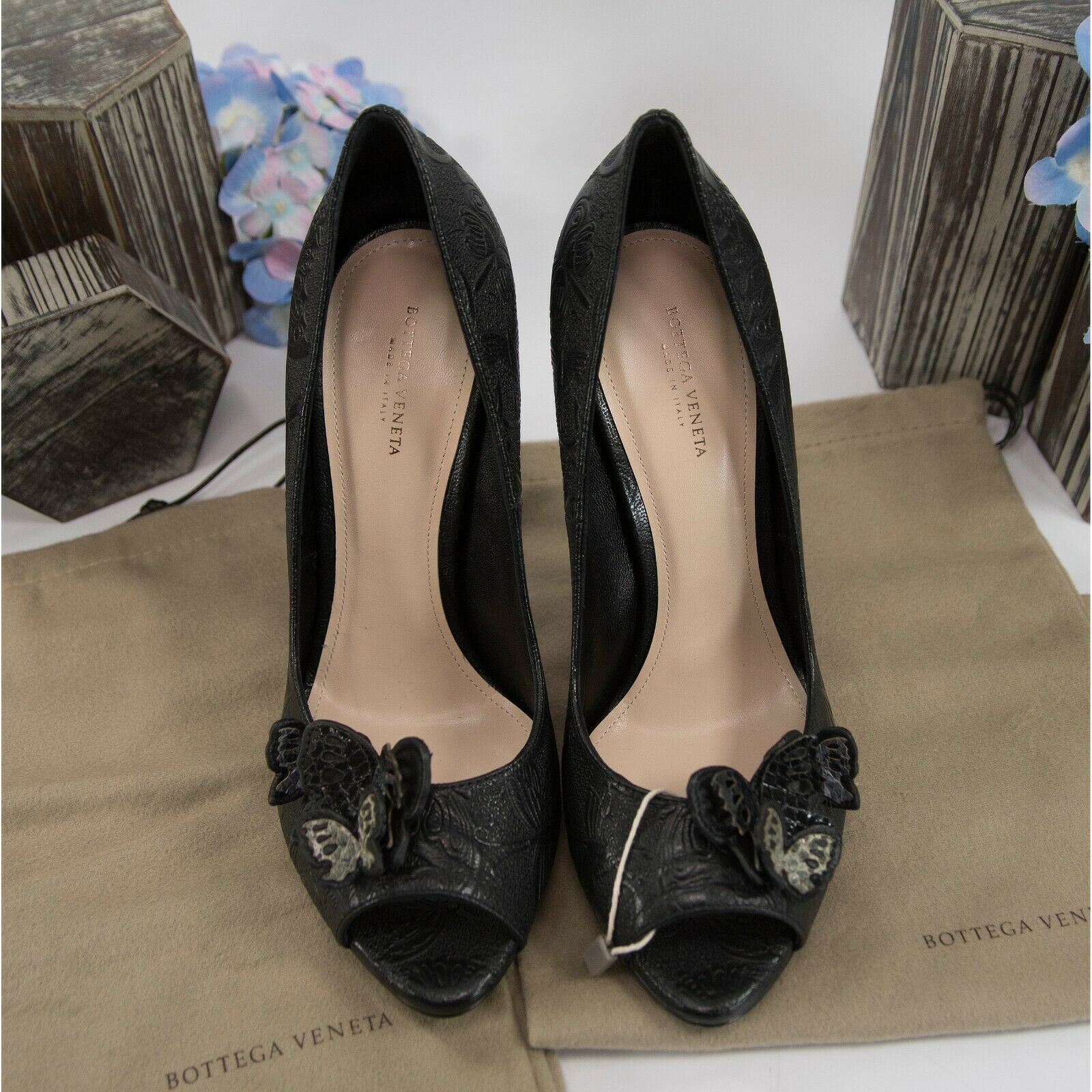 Bottega Veneta Black Leather Python Butterfly Runway Heels 38 8 NIB $2450