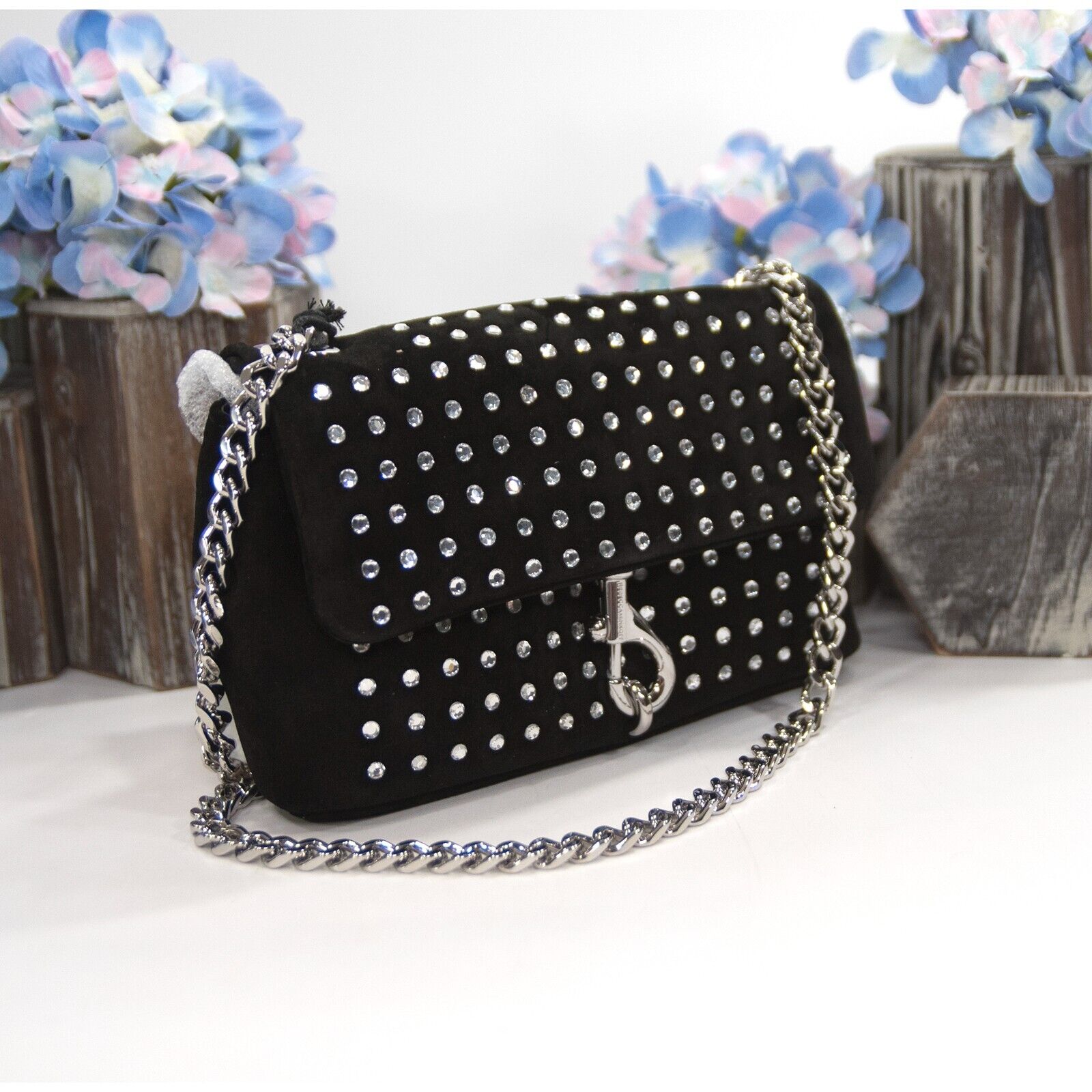 Rebecca Minkoff Edie Date Night Studded Black Suede Mini Bag NWT