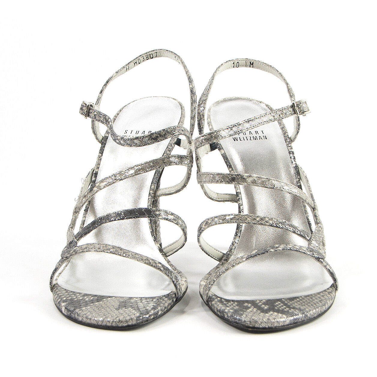 Stuart Weitzman Cosacrobat Silver Cosmic Serpent Leather Strappy Heels 10 NIB