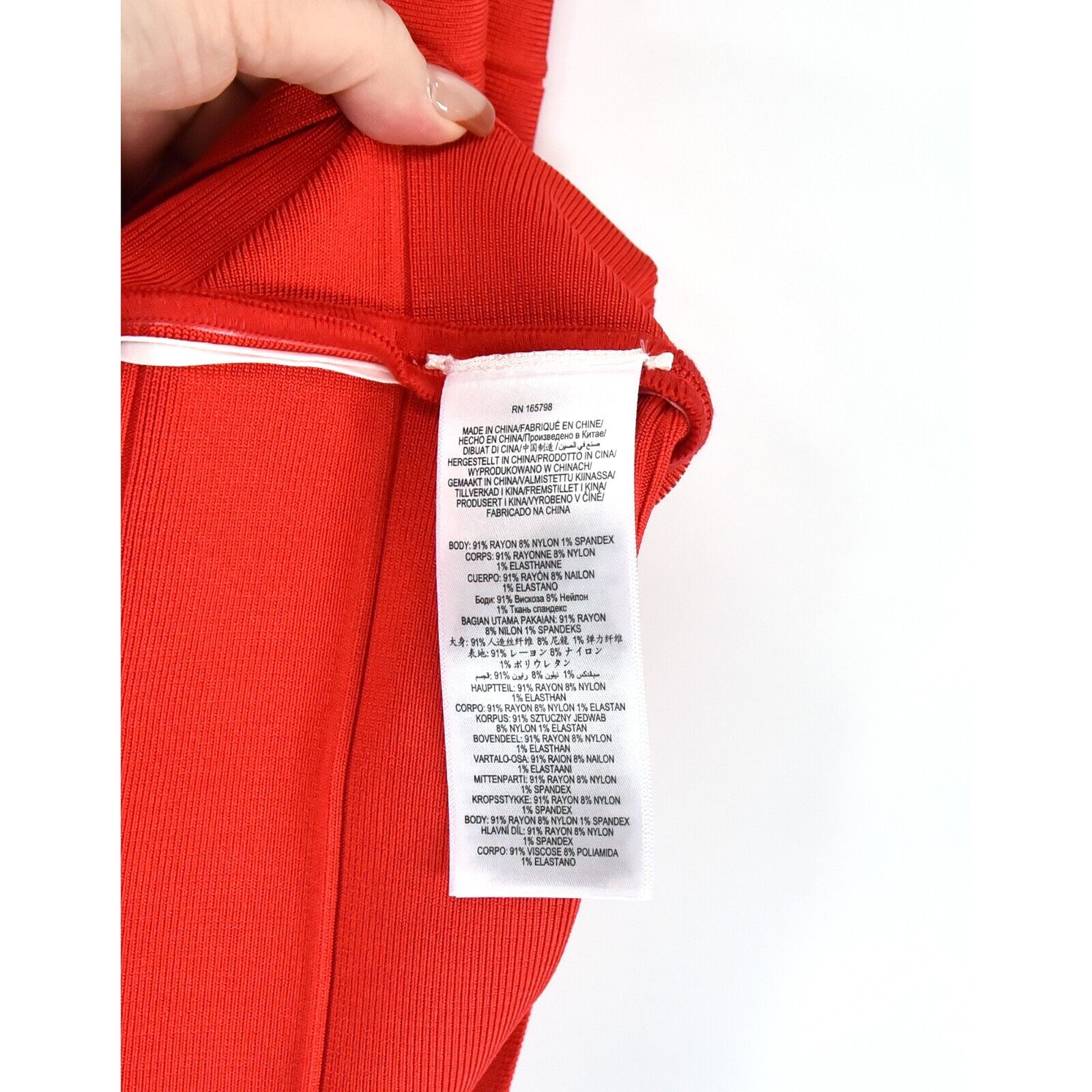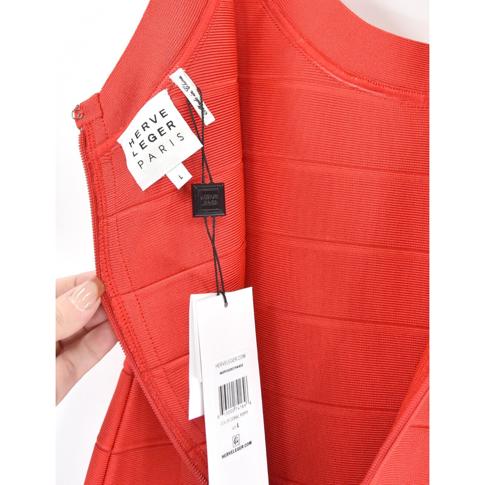 Herve Leger Scoop Neck Coral Poppy Mini Bandage Bodycon Dress Large NWT $790