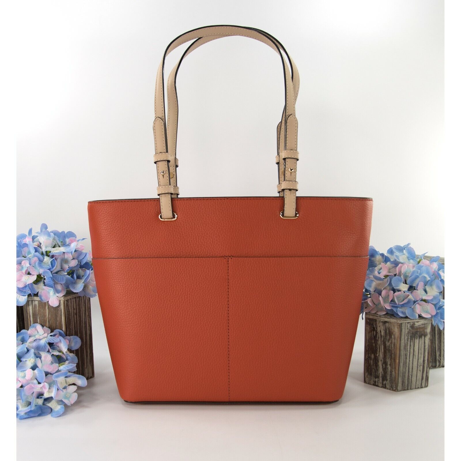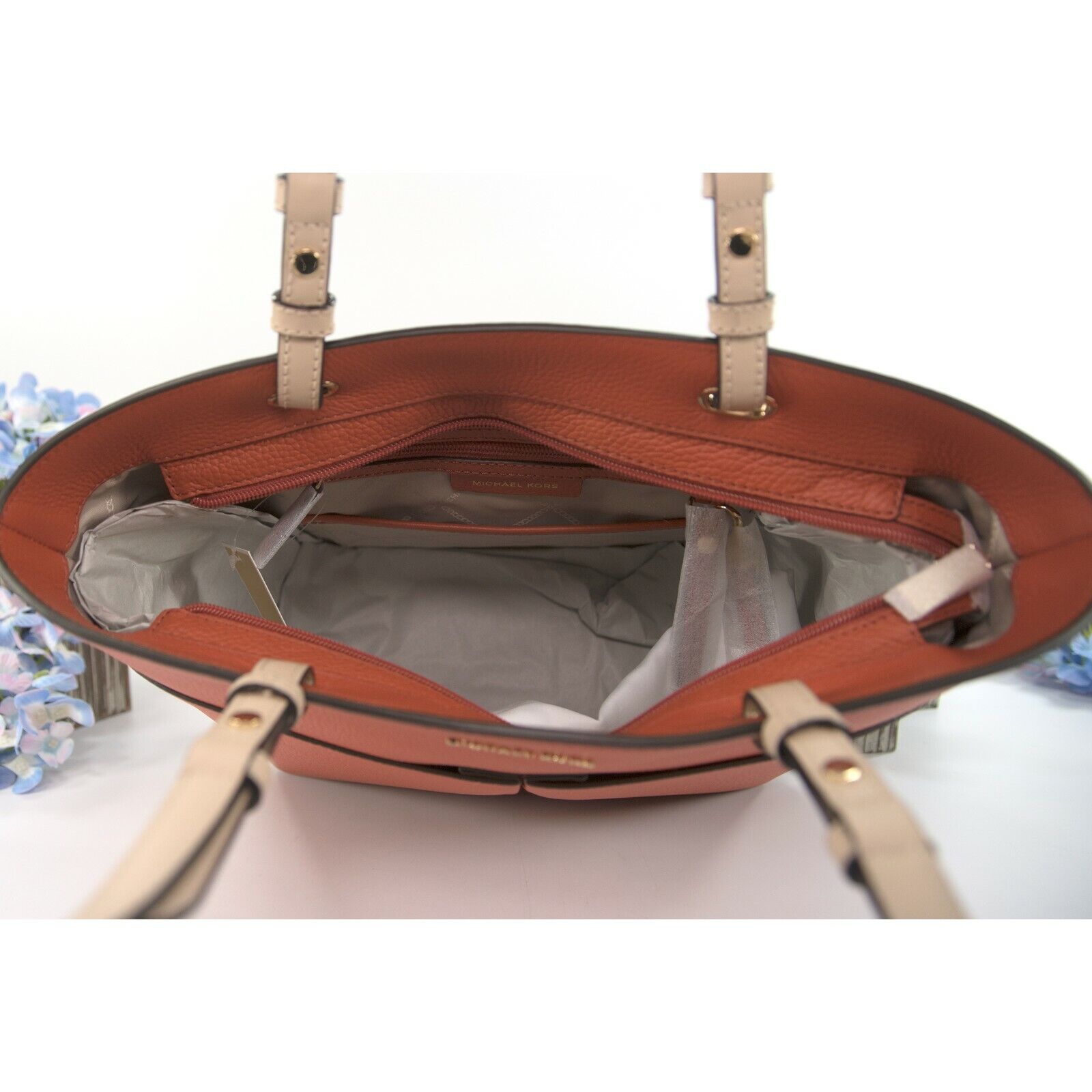Michael Kors Orange Spice Leather East West Top Zip Pocket Tote Bag NWT
