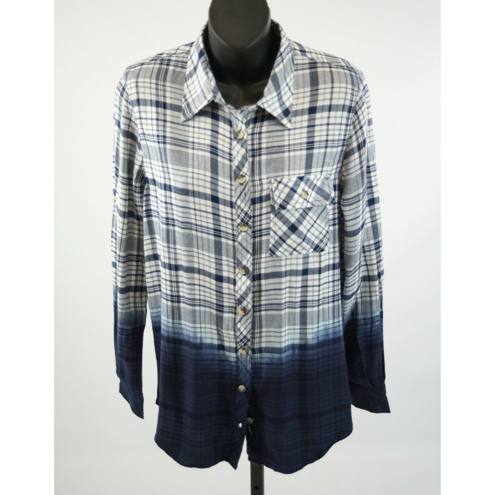 Tolani Emma Plaid Blue Viscose Dip Dye Button Down Blouse NWT $295