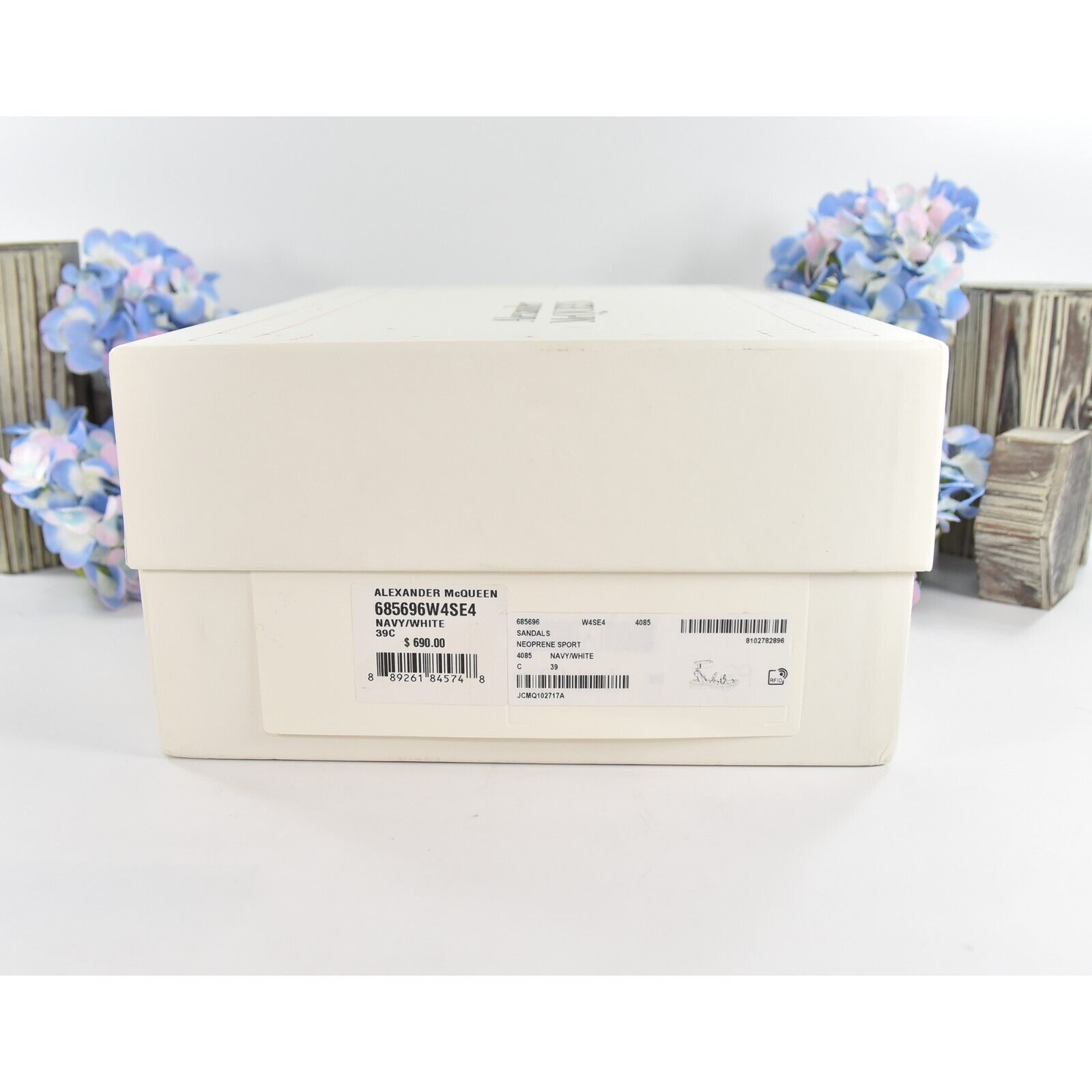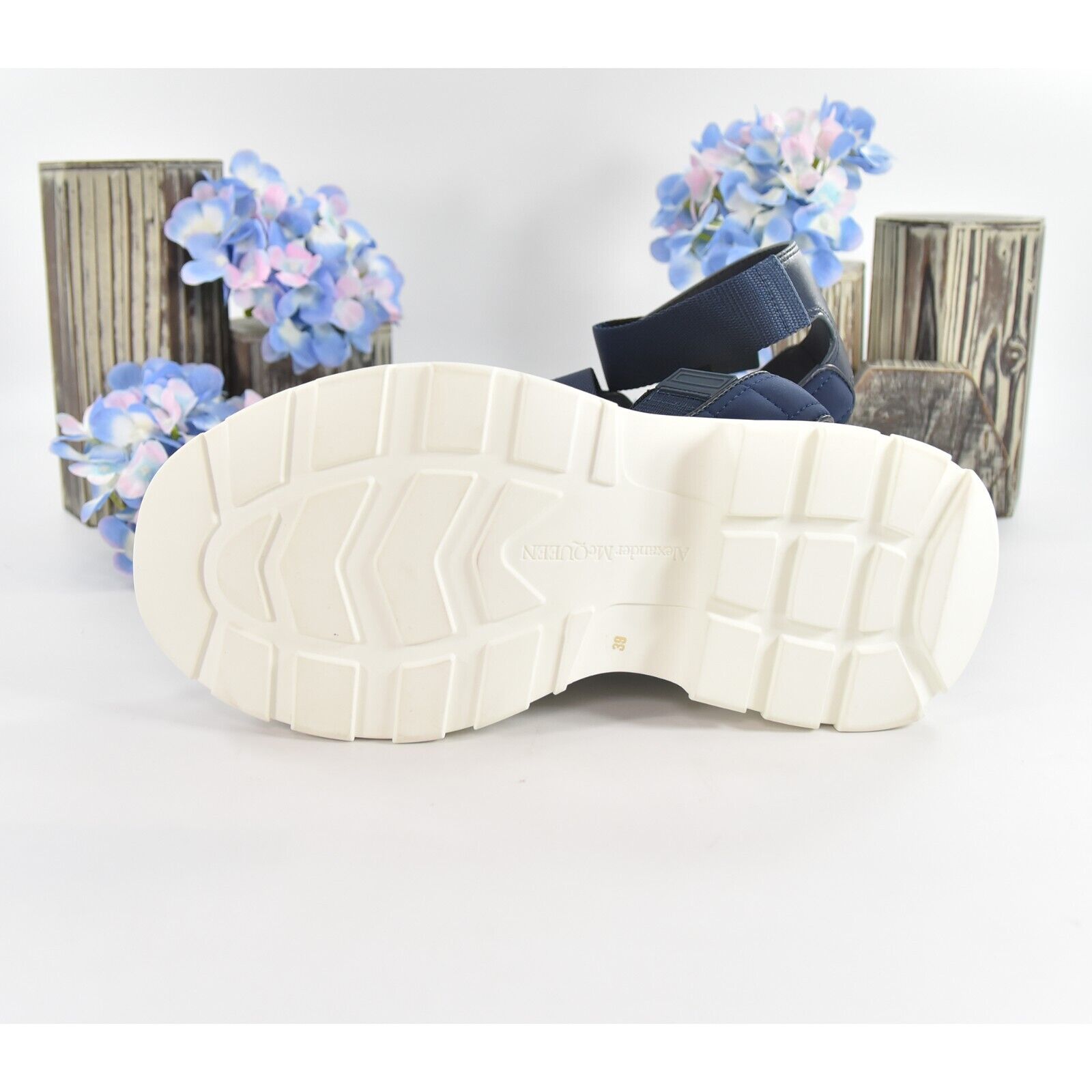 Alexander McQueen Navy White Hybrid Tech Leather Neoprene Sandals 39 NIB