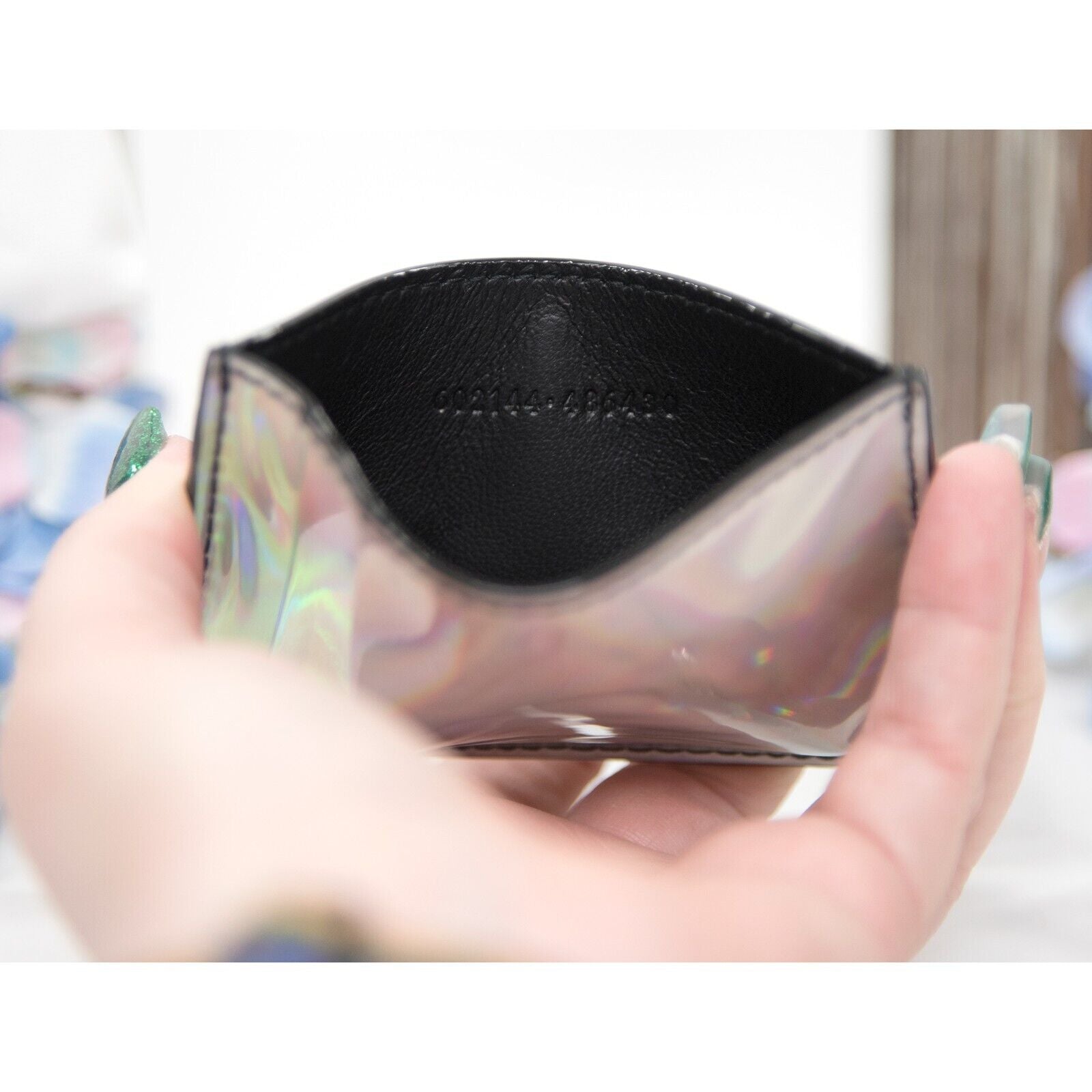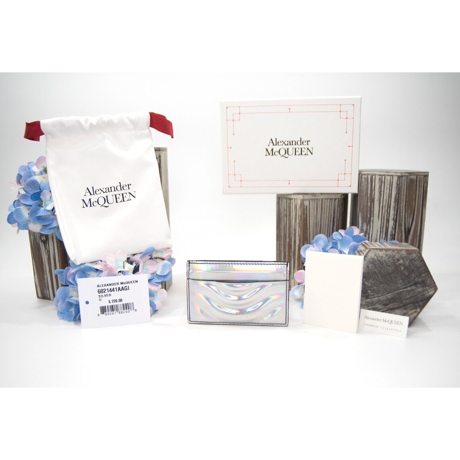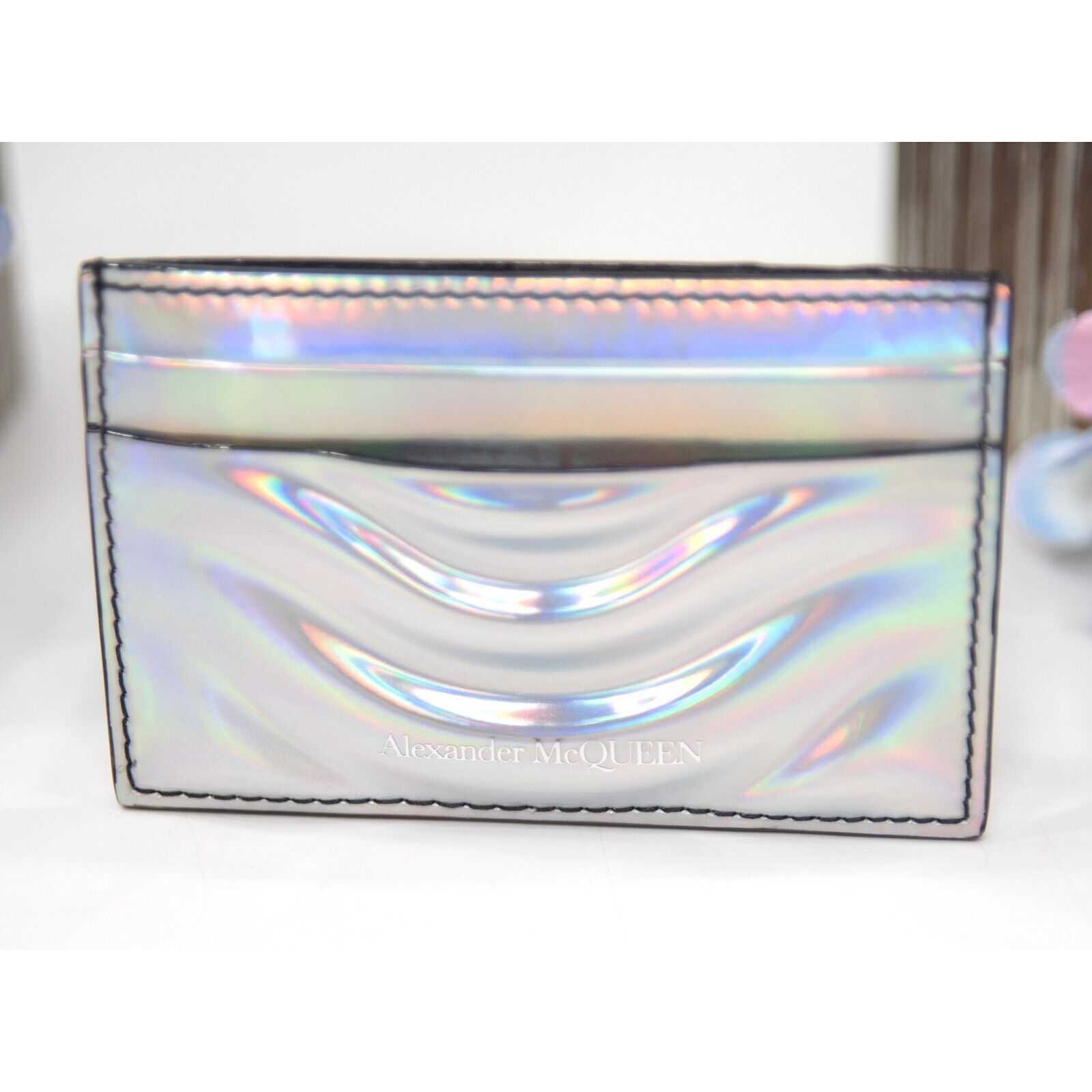 Alexander McQueen Ribcage Iridescent Leather Logo Card Case Mini Wallet NWT