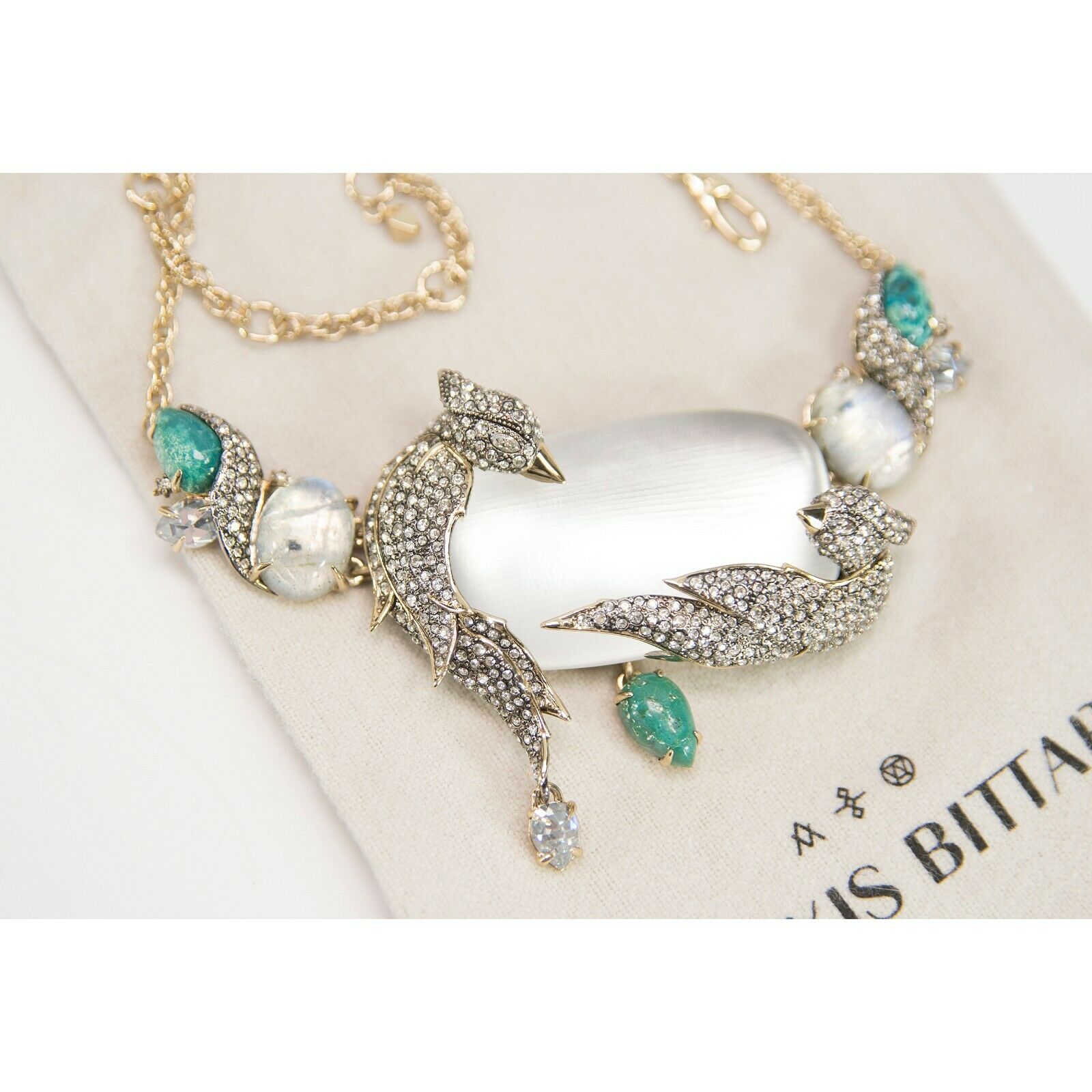 Alexis Bittar Love Birds Crystal Lucite Station Statement Necklace NWT