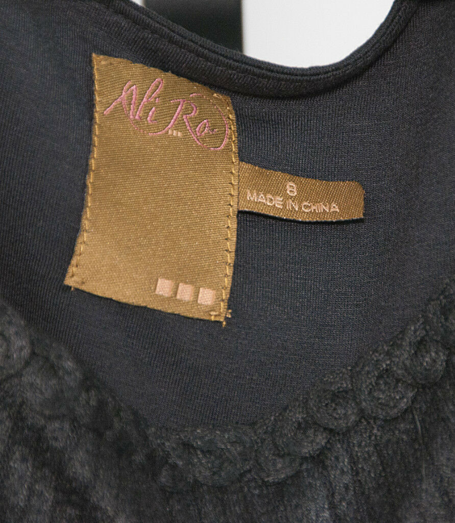 Ali Ro Black Floral Crochet Bodice Sleeveless Rayon Knit Summer Sun Dress 8 NWT