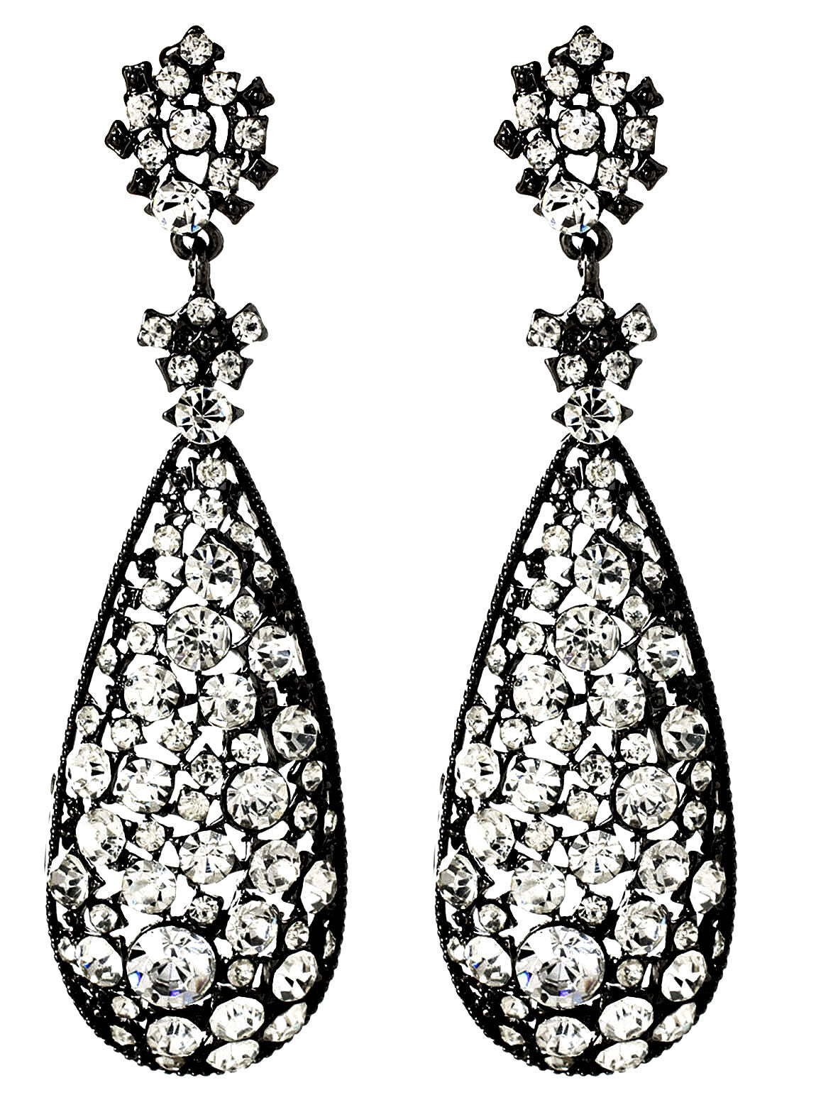 Amrita Singh Eloise Crystal Black Enamel Large Statement Earrings ERC 54 NWT