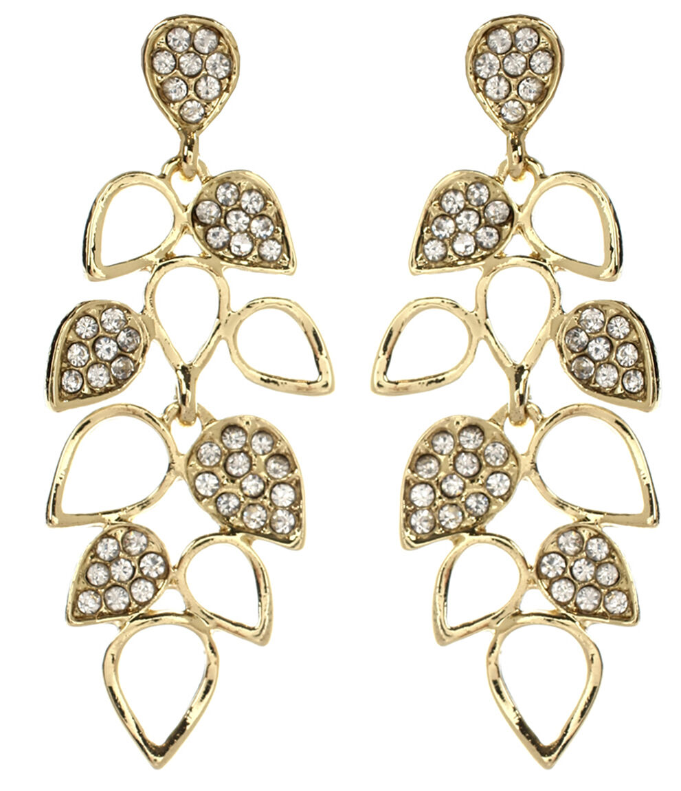Amrita Singh Milly Gold Pave Crystal Leaf Dangle Drop Earrings ERC 1654 NWT