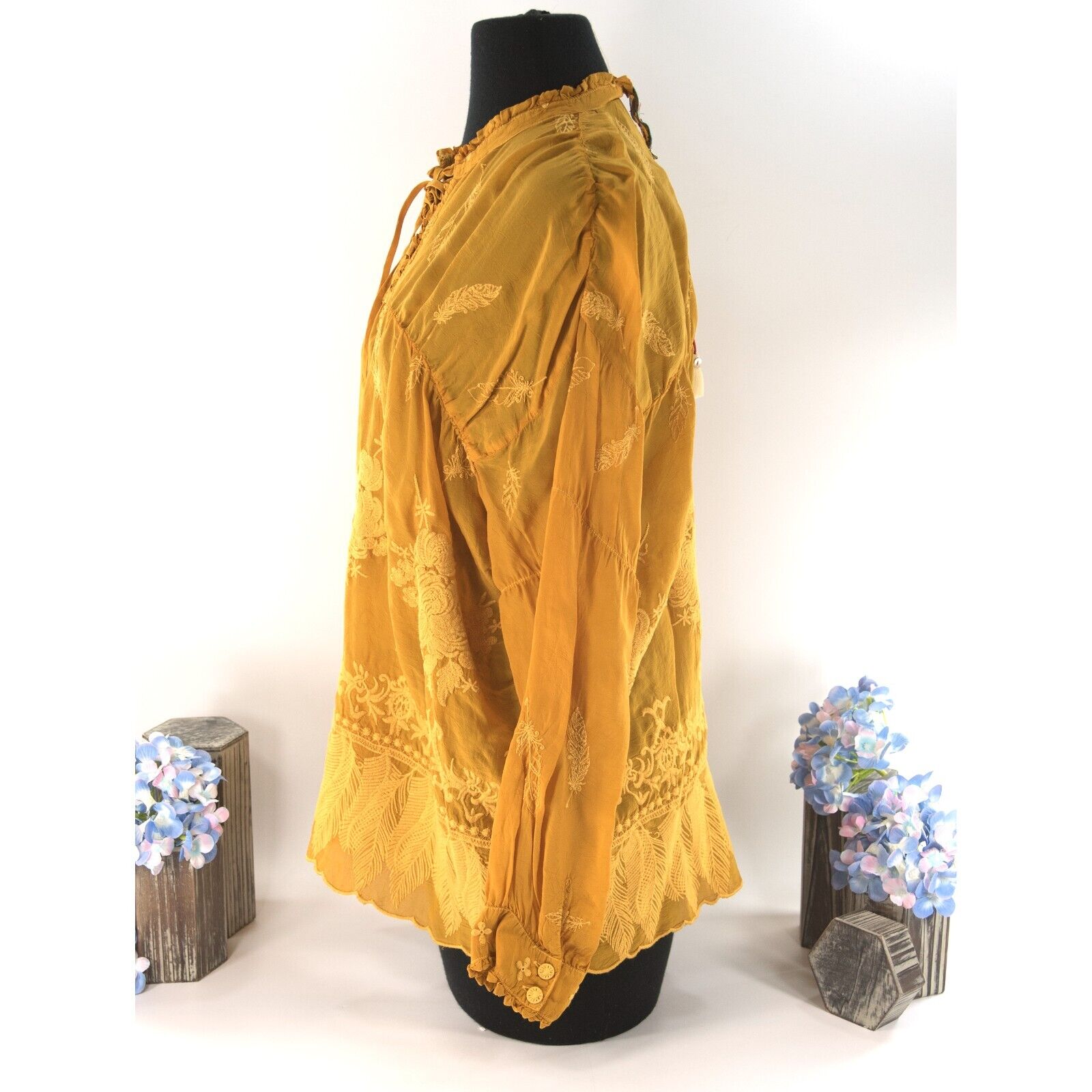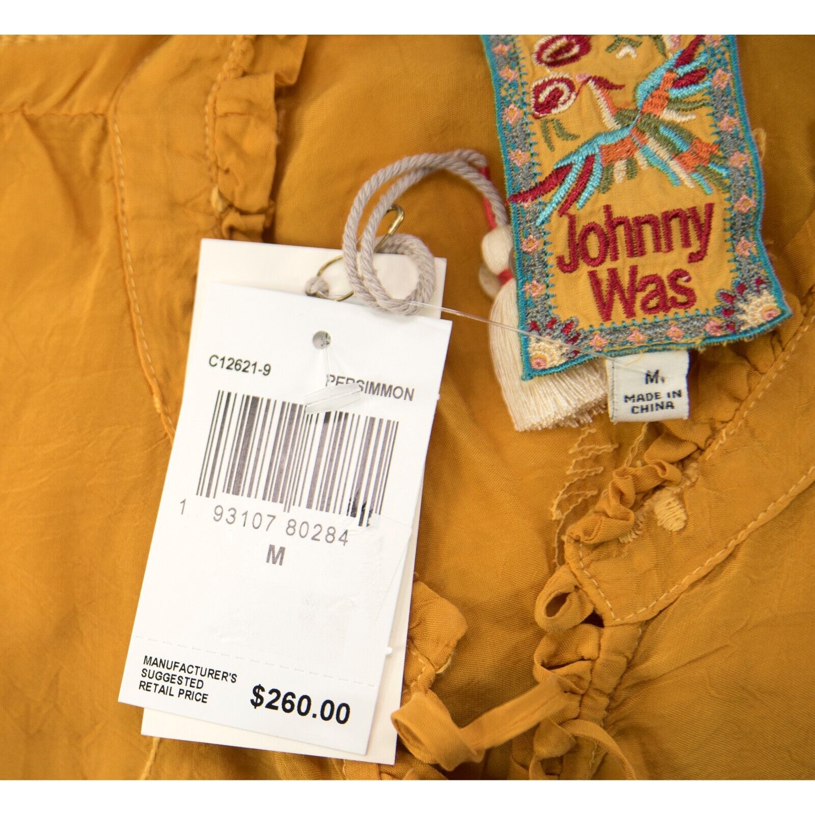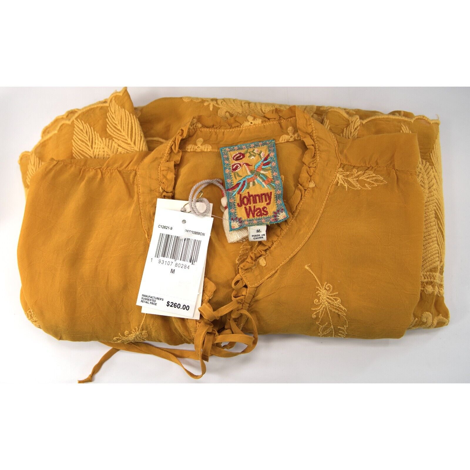 Johnny Was Persimmon Rayon Embroidered Lara Feather Top Shirt Blouse Sz M NWT