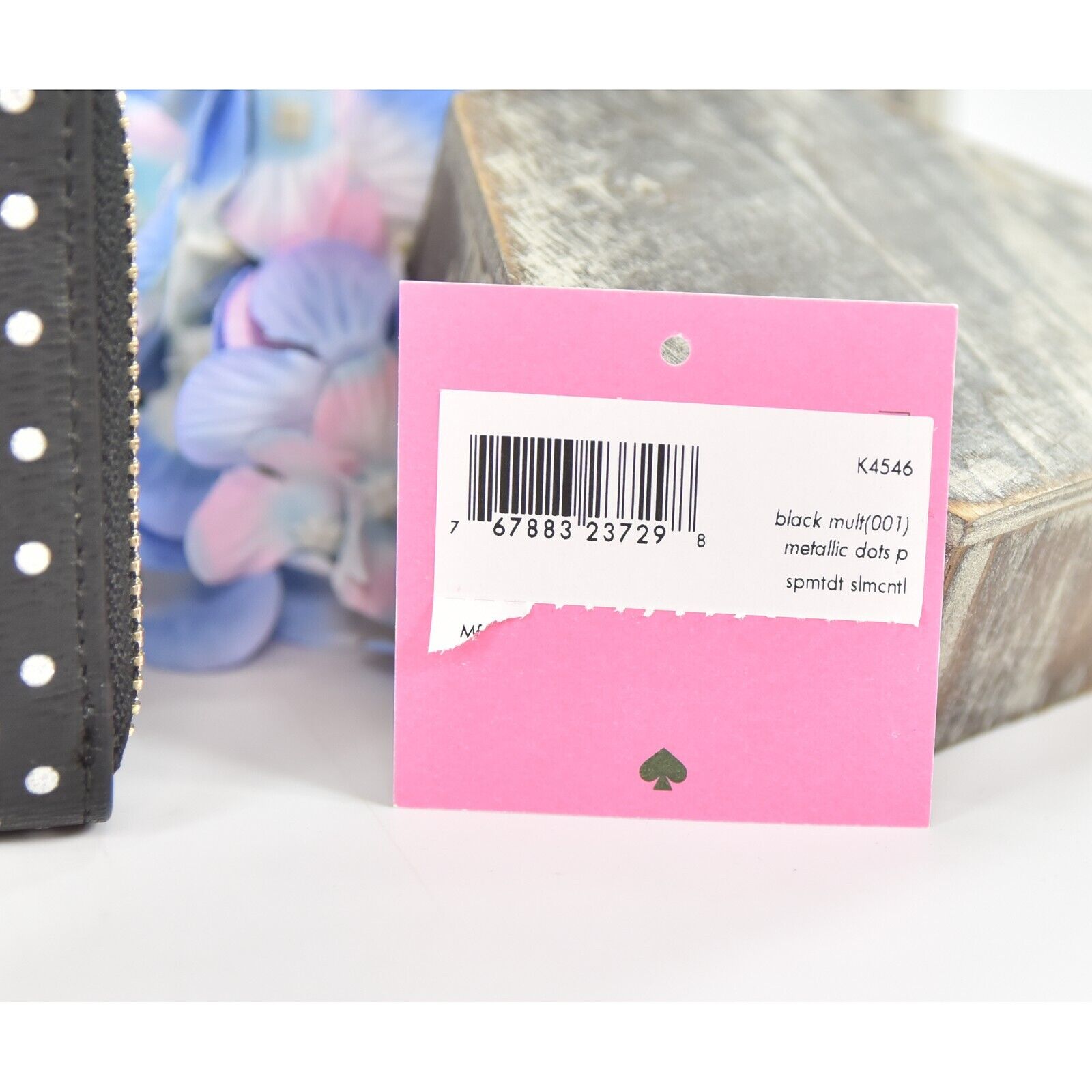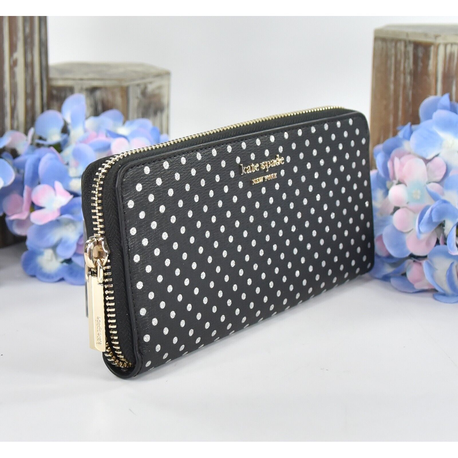 Kate Spade Black Silver Metallic Dot Leather Spencer Zip Around Lacey Wallet NWT