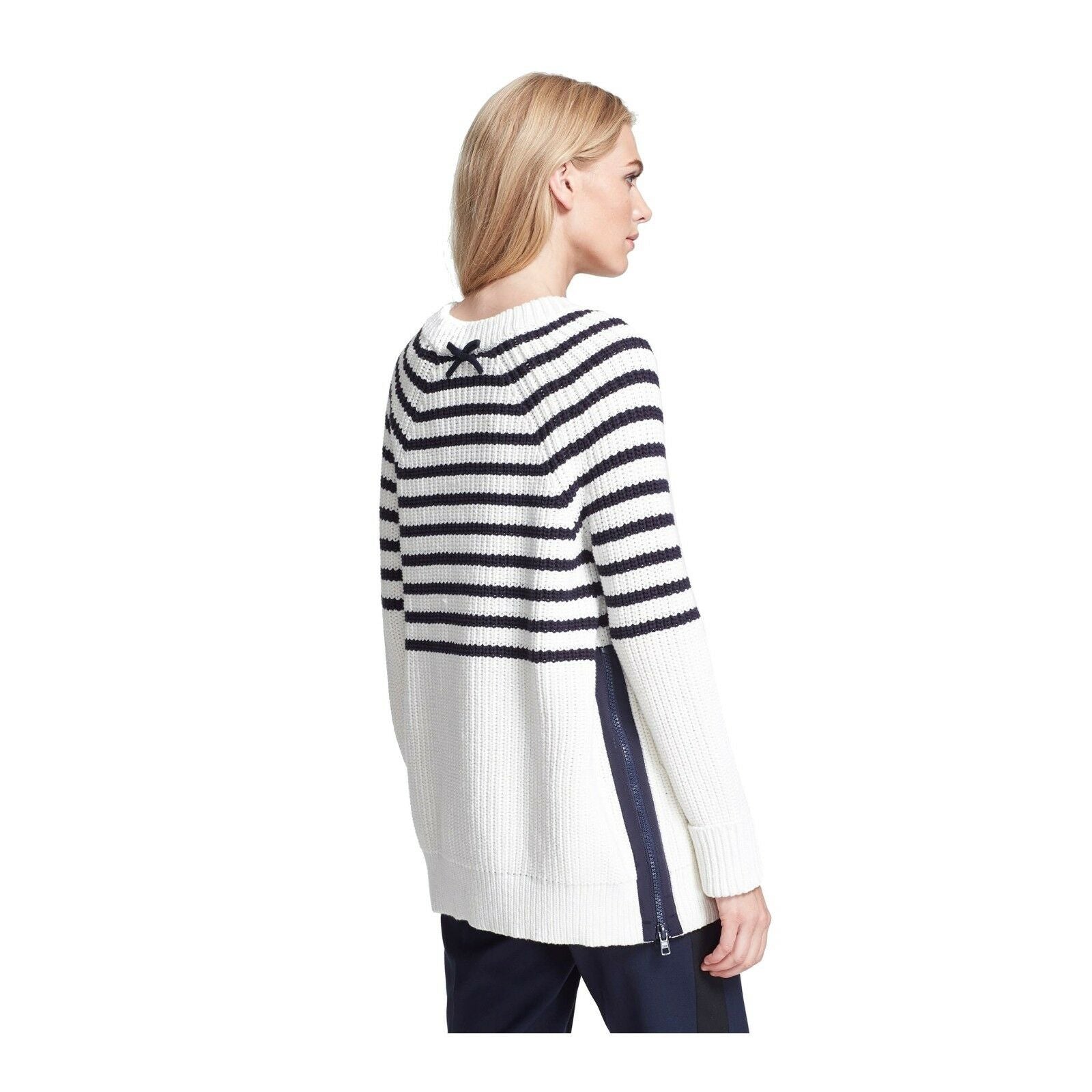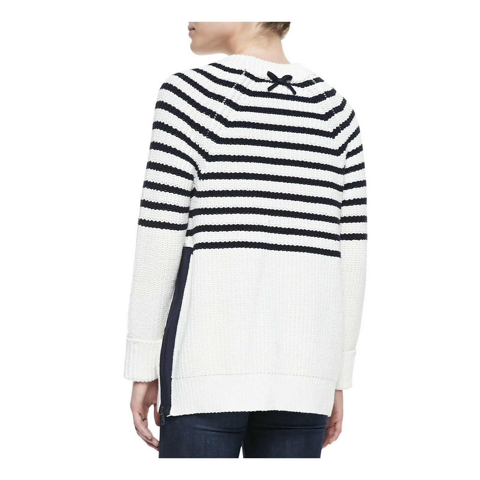 Kate Spade Navy Cream Striped Chunky Transcontinental Express Aura Sweater M NWT