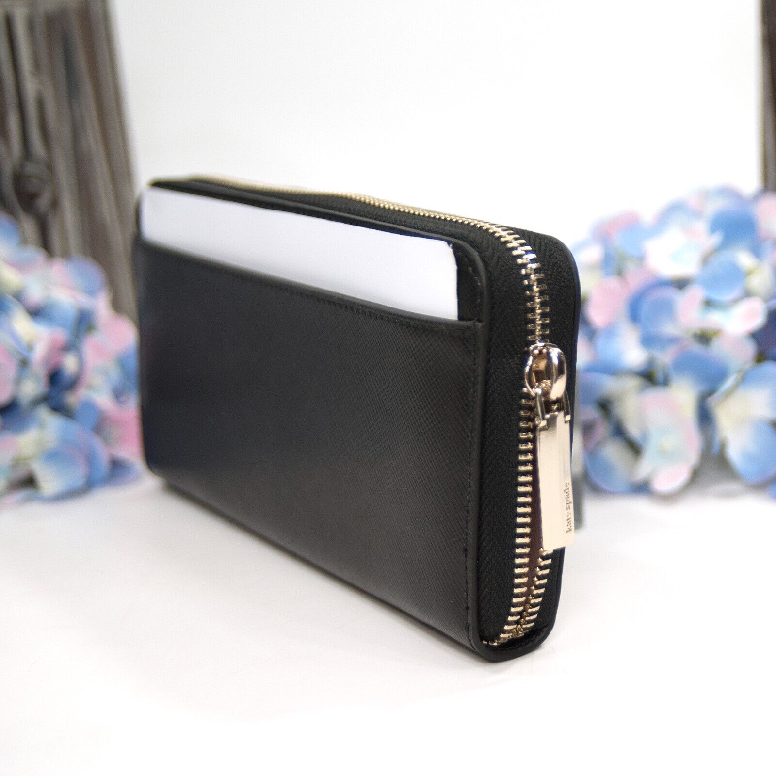 Kate Spade Spencer Black Leather Zip Around Large Continetal Lacey Wallet NWT