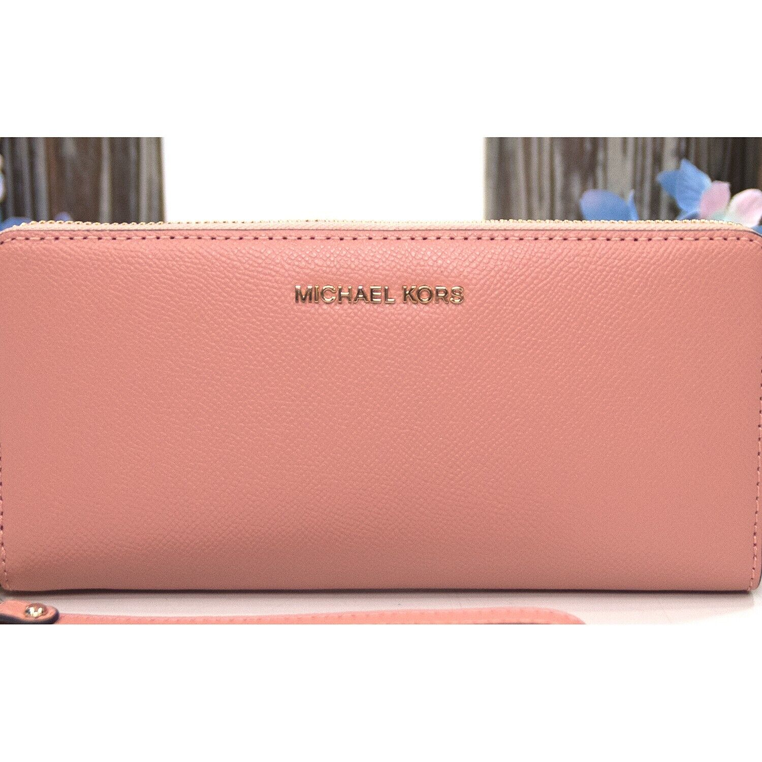 Michael Kors Sunset Rose Leather Zip Around Travel Wallet NWT