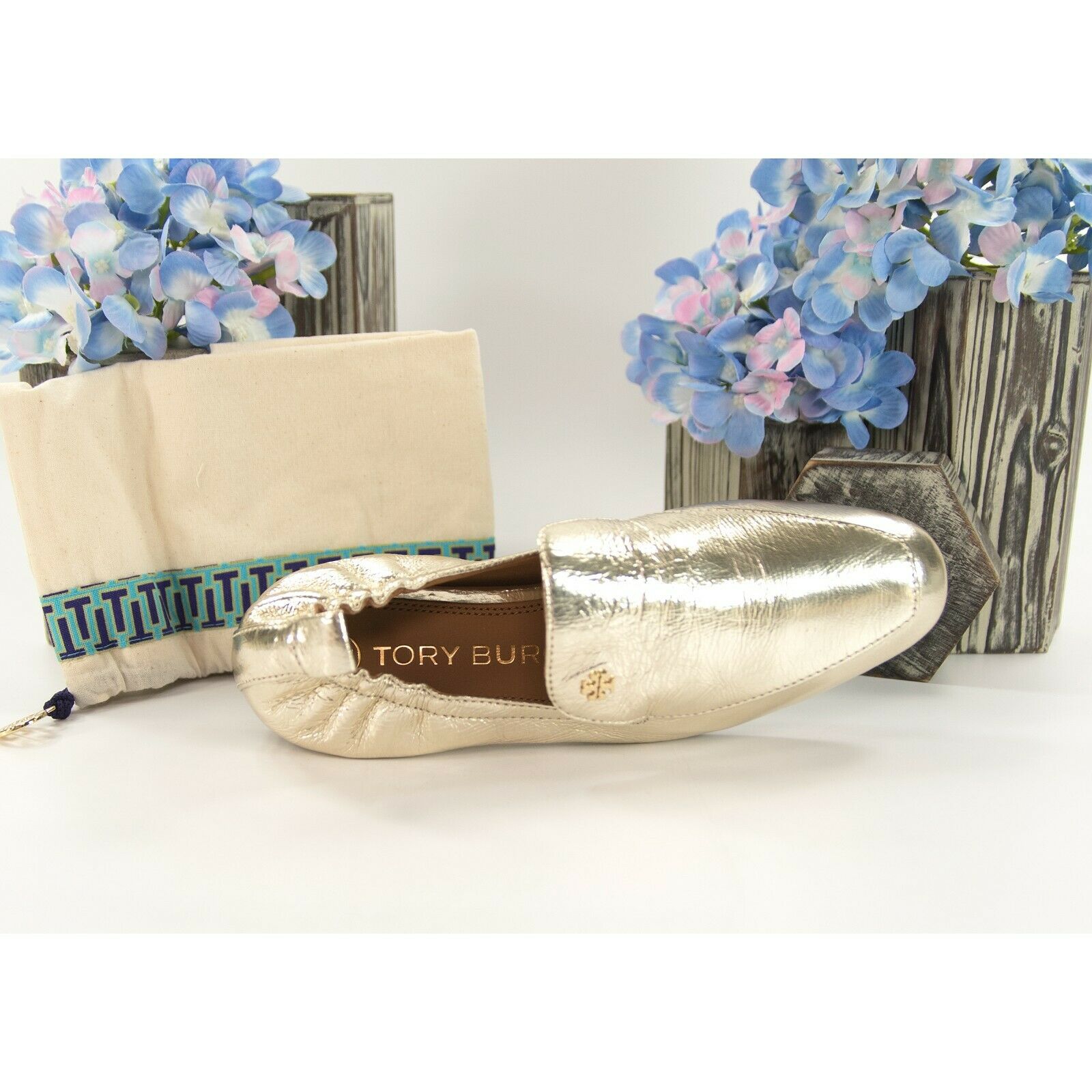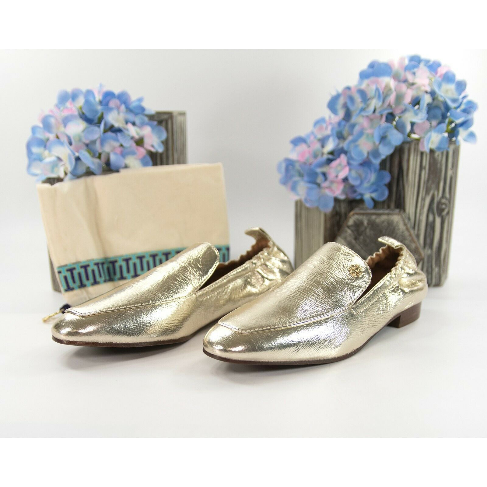 Tory Burch Kira 20MM Spark Gold Metallic Leather Elastic Loafer Sz 6 NIB