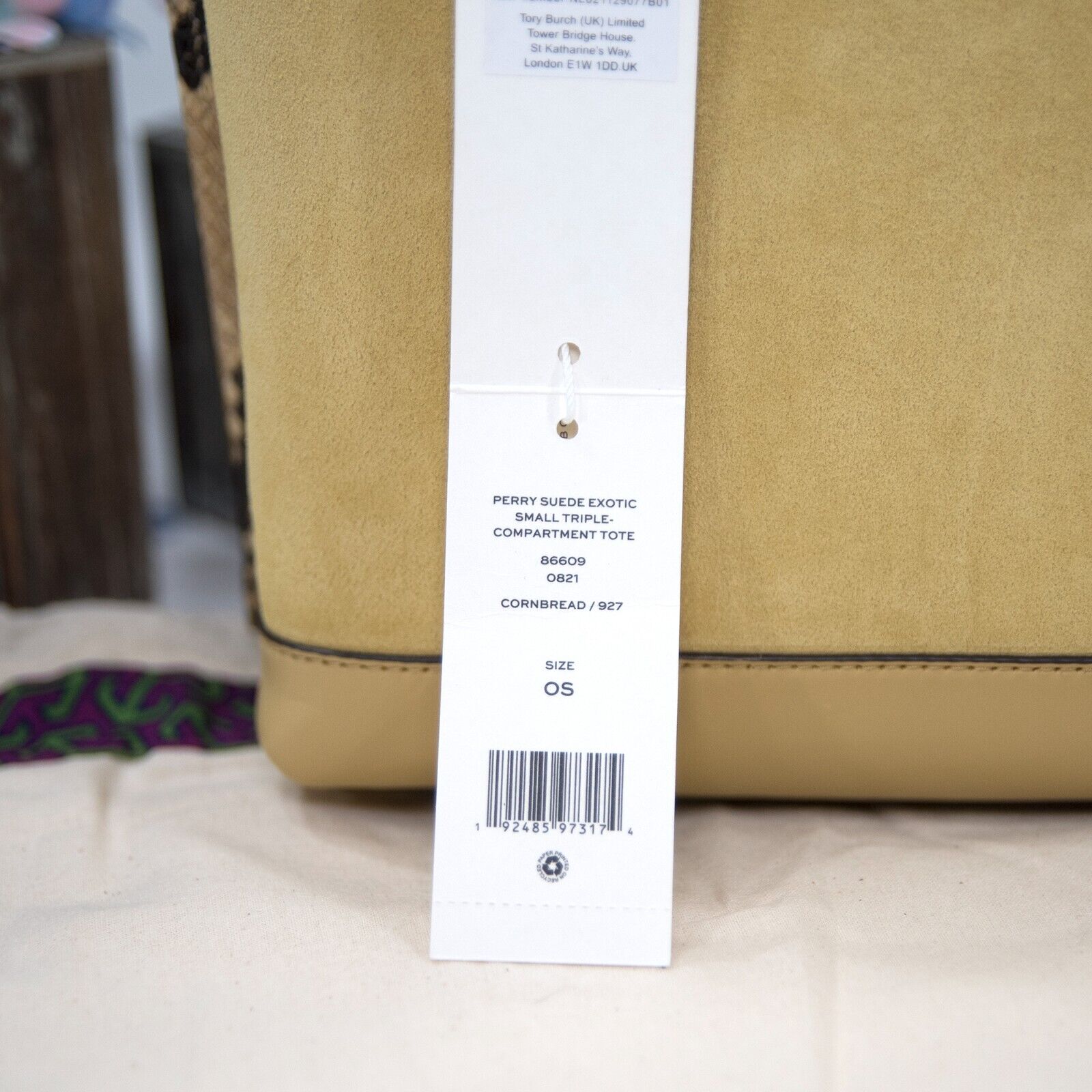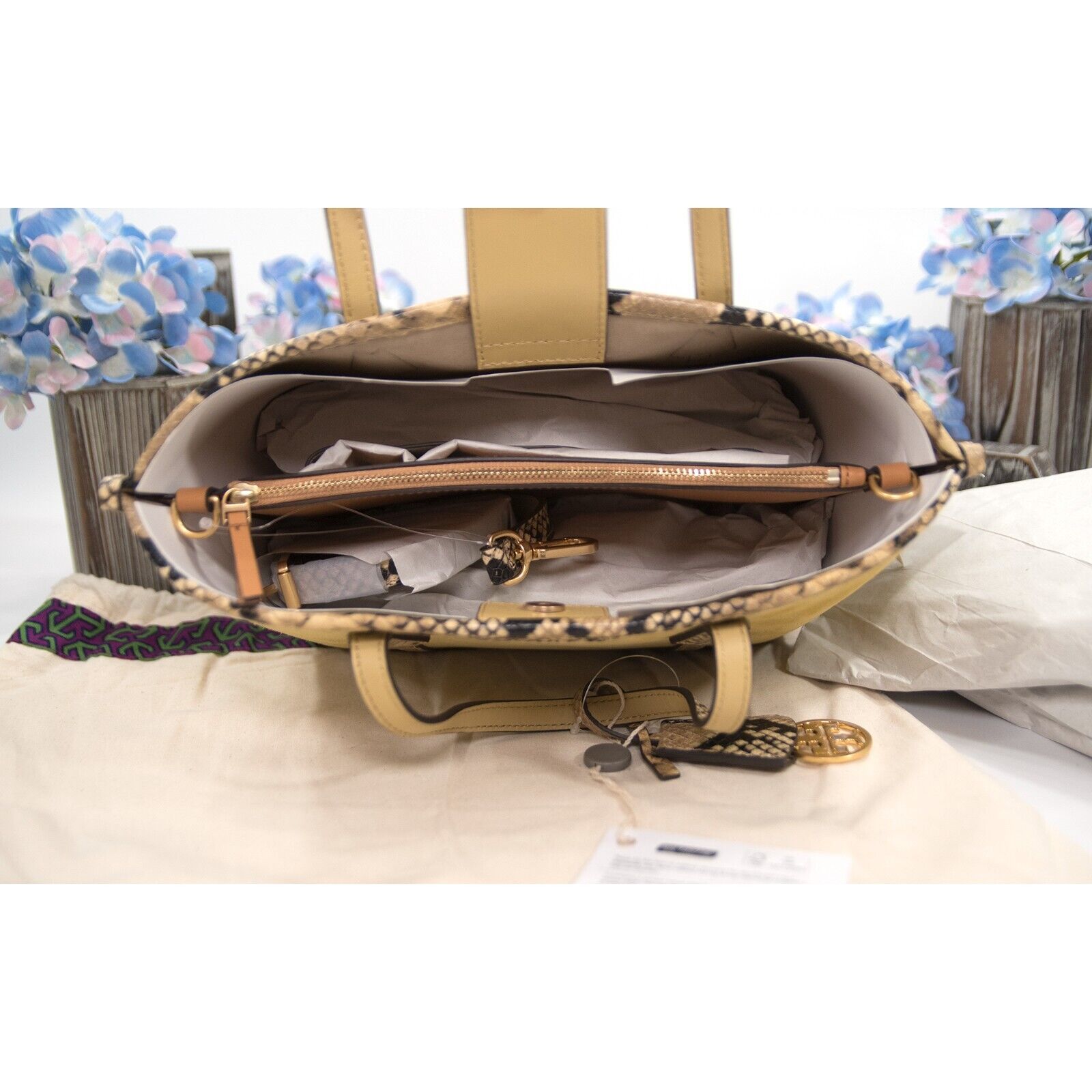 Tory Burch Perry Cornbread Suede Exotic Snake Small Triple Compartment Tote BNWT
