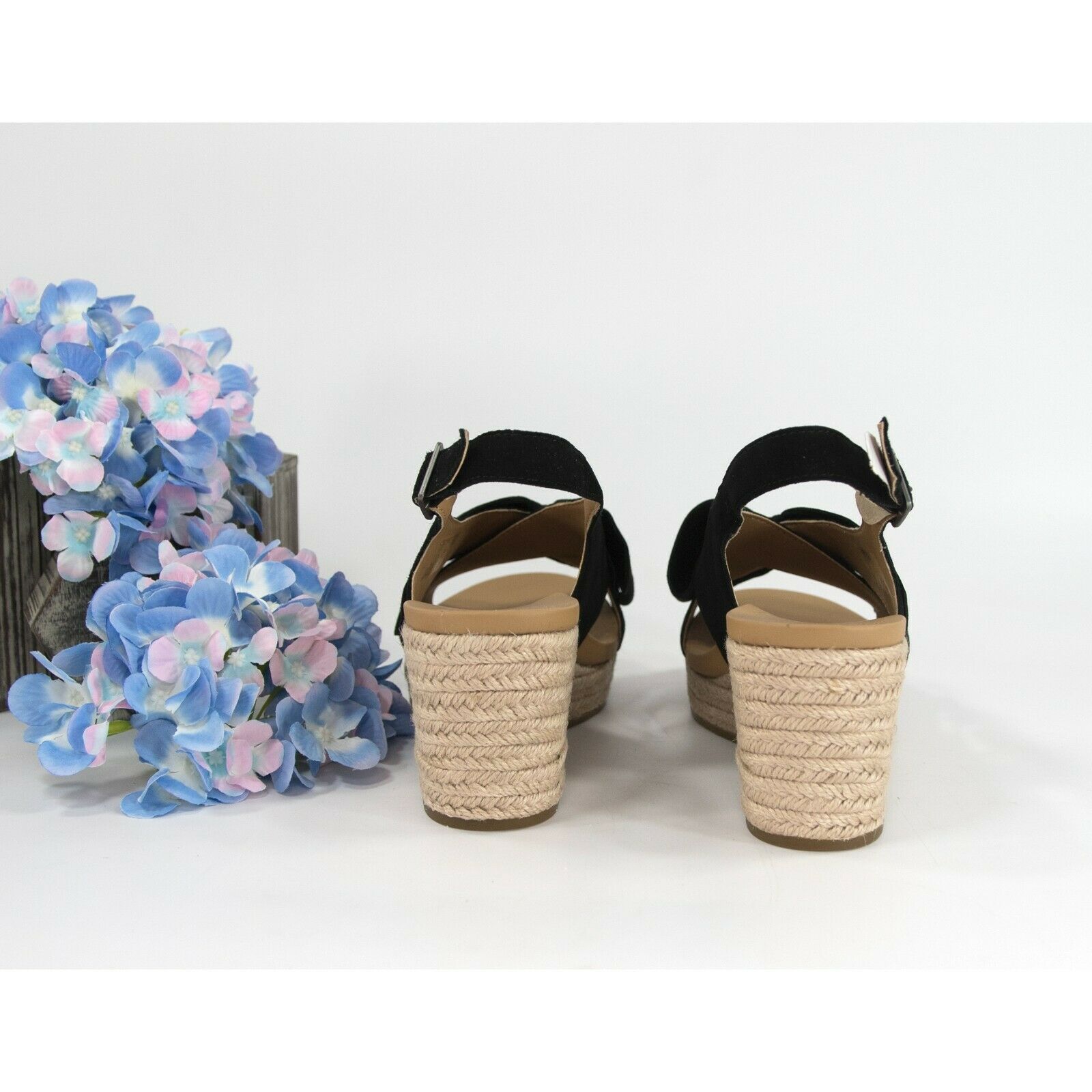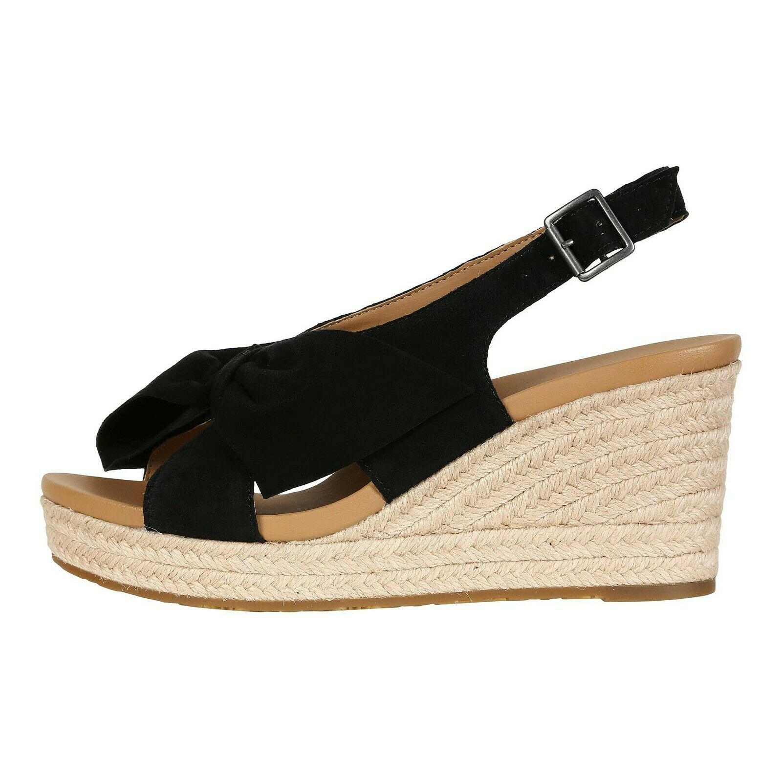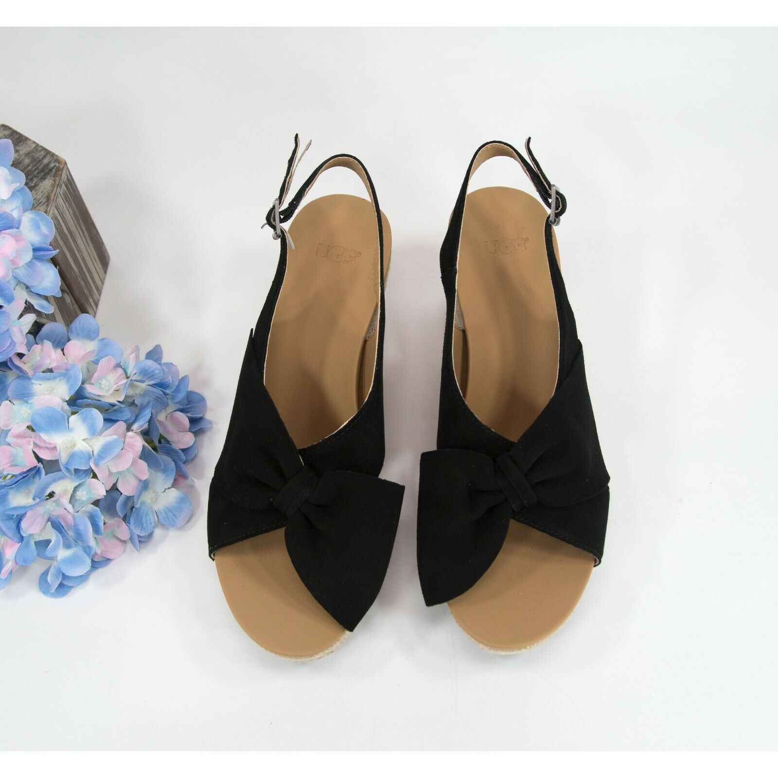 Ugg Camilla Black Suede Bow Front Wedge Heels Sz 8.5 NIB