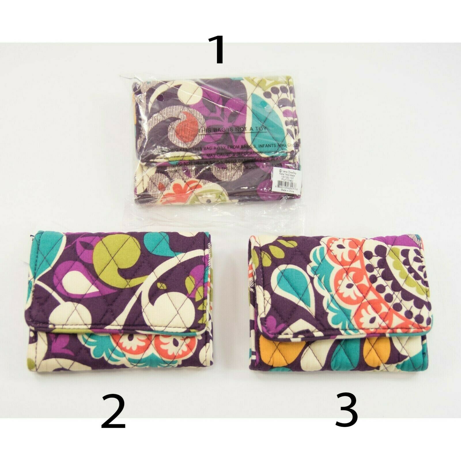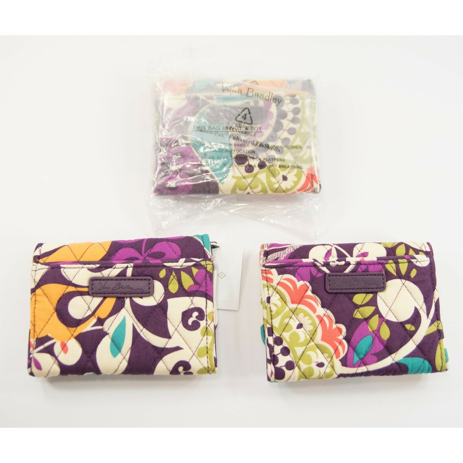 Vera Bradley Plum Crazy Petite Trifold Card Case Holder Mini Wallet NWT